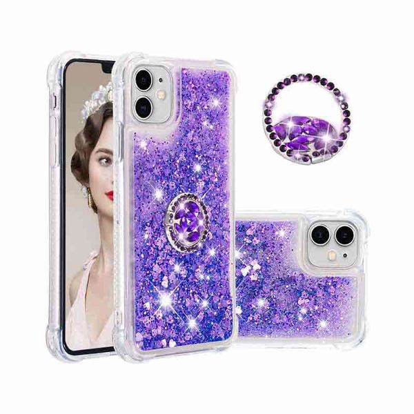 Shockproof Liquid Glitter Soft Tpu Case For Iphone 11 6 1 Clear Phone Shell Back Cover With Ring Holder For Iphone 11 Pro Max Xs Xr 7 Plus Cell