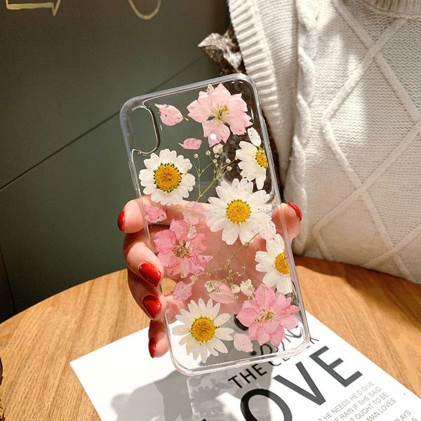 Real Dried Daisy Flower Leaf Clear Phone Case Back Cover For Iphone 11 11 Pro 11 Pro Max Xs Max Xr Xs X 8 Plus 8 7 Plus 7