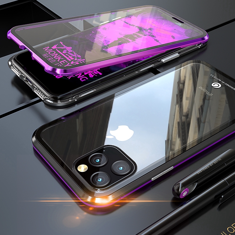 Iphone 11 Pro Max 360 Full Protection Magnetic Metal Case Front Back Tempered Glass Case Back Cover